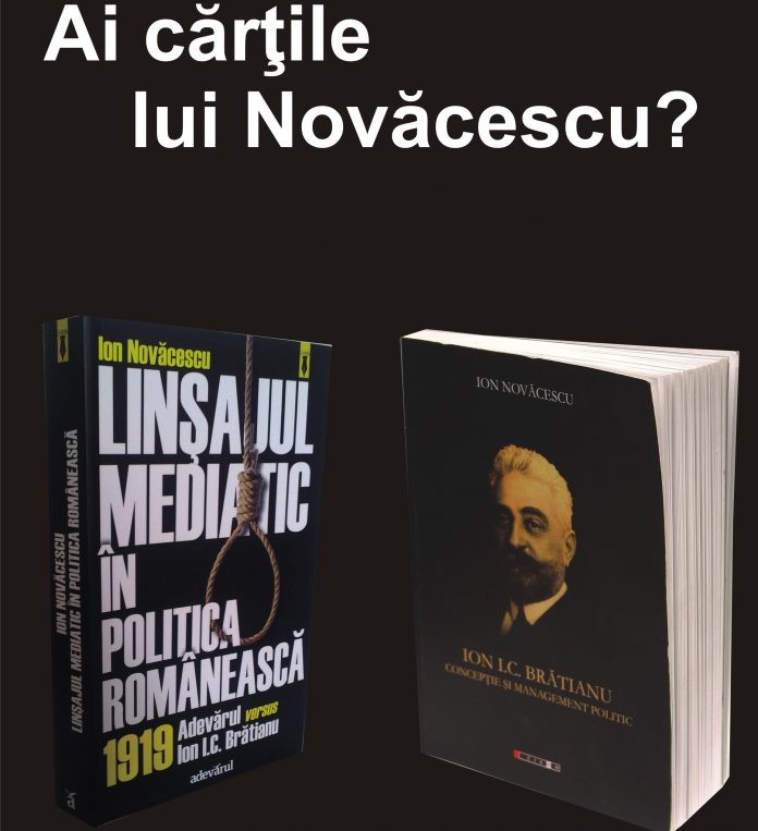Cărtile: Ion I.C. Brătianu. Concepție și management politicEditura Eikon, Cluj Napoca, 2011, 410 p. si: Linsajul mediatic în politica româneasca. 1919. Adevărul versus Brătianu, Editura Adevărul, Bucuresti, 2013, 425 p., CU DEDICATIE din partea autorului – le puteti procura daca trimiteti o comanda prin mail la: ion(at)novacescu.ro sau un mesaj pe Facebook/Ion Novacescu.