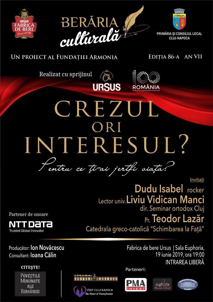 Pornind de la teribila dilemă a Reginei României Mari, la cea de-a 86-a ediție a Berăriei Culturale, încercăm să aflăm dacă mai există ceva astăzi în România și în lumea ta pentru care să merite să-ți jertfești viața?